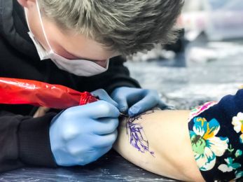 Подбирать краски и иглы, оборудовать рабочее место, стерилизовать инструменты и работать с тату-машинкой.